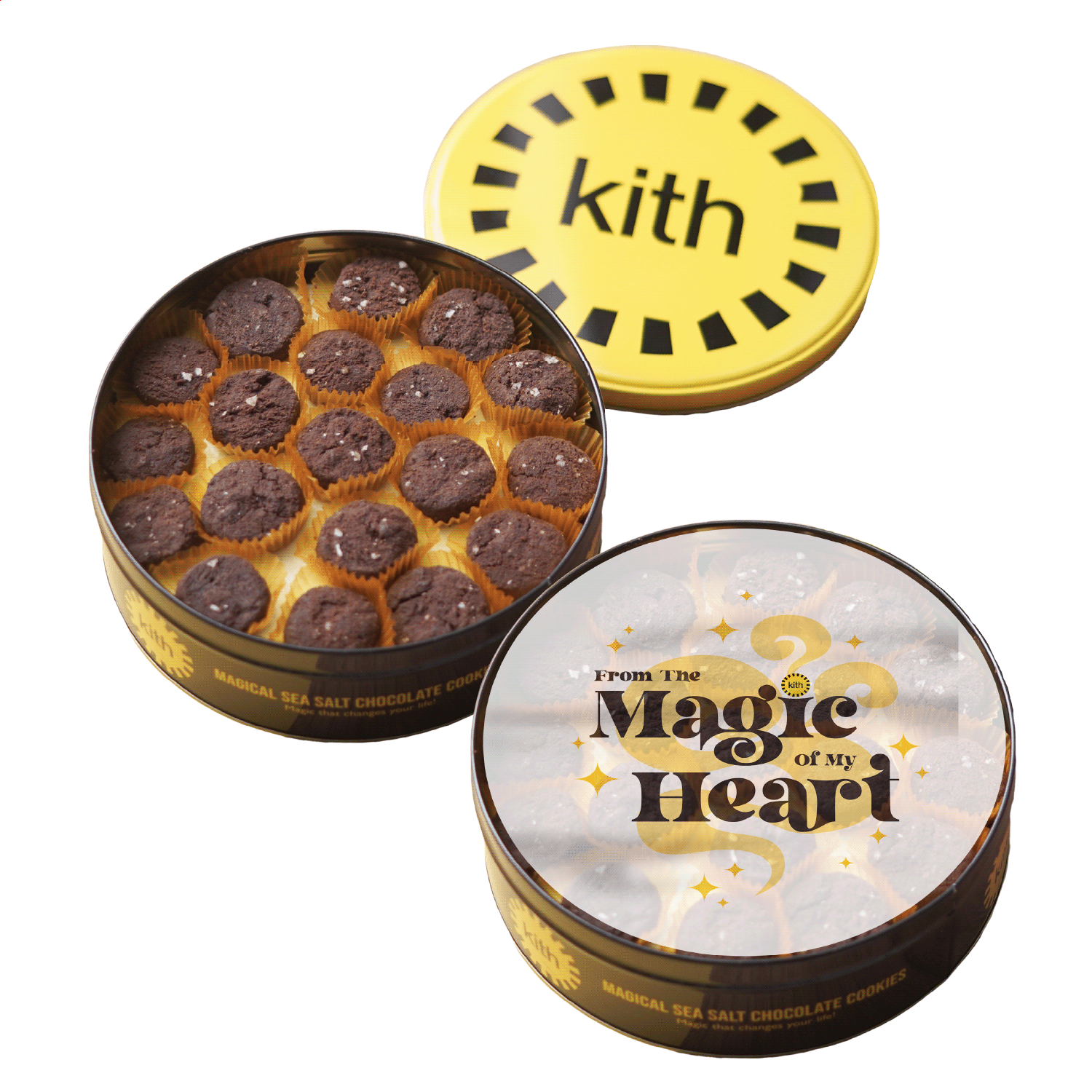 Celebrate the season with our signature Magical Sea Salt Chocolate Cookies, packed in our iconic yellow Kith tin — a festive favourite and a thoughtful gift for anyone who loves a little holiday magic.